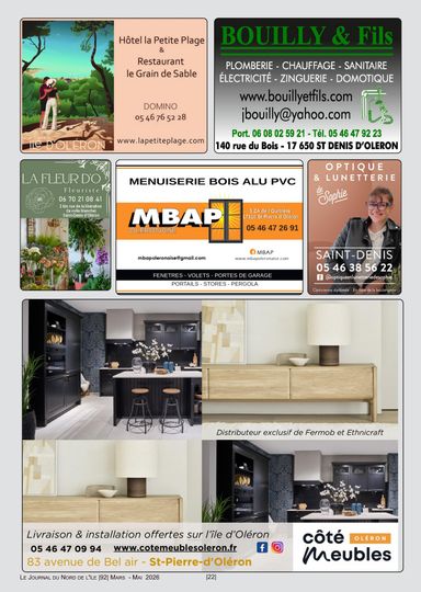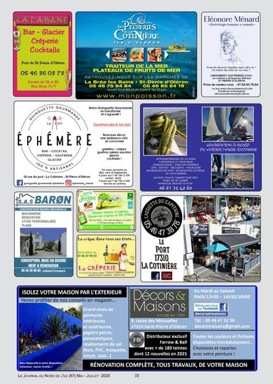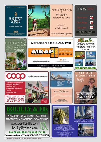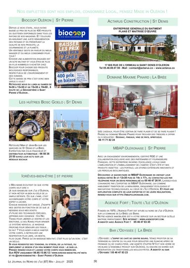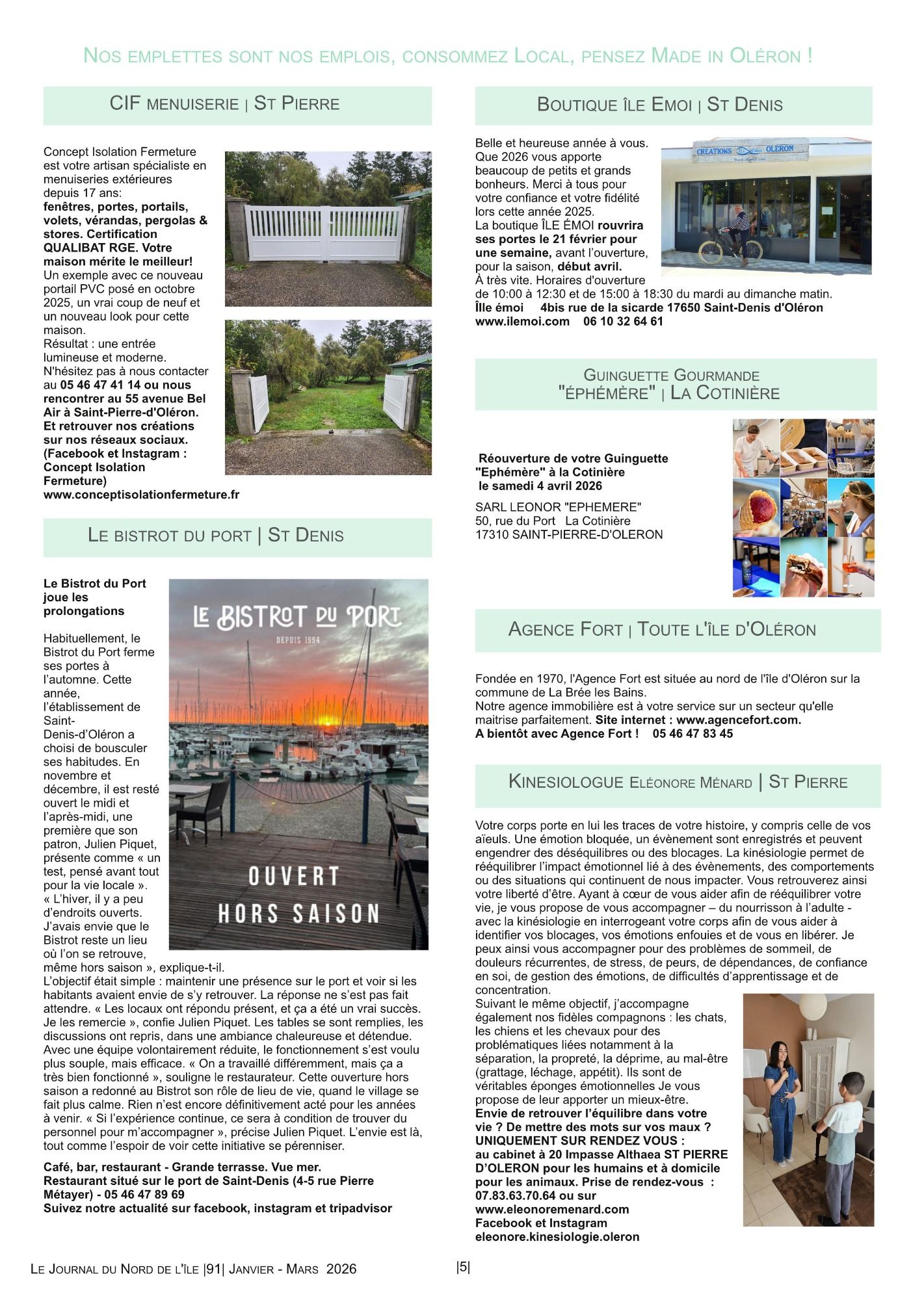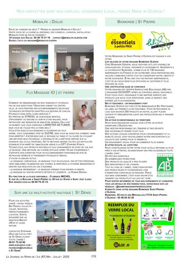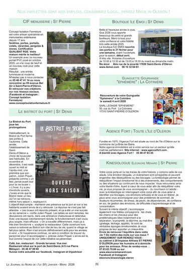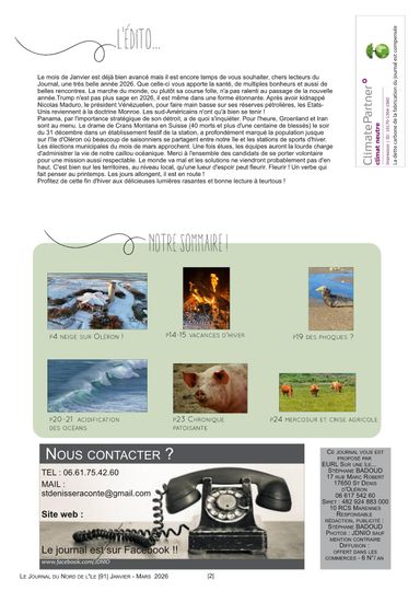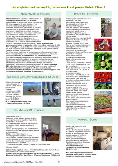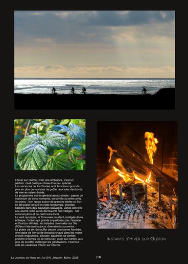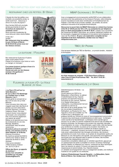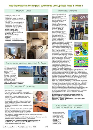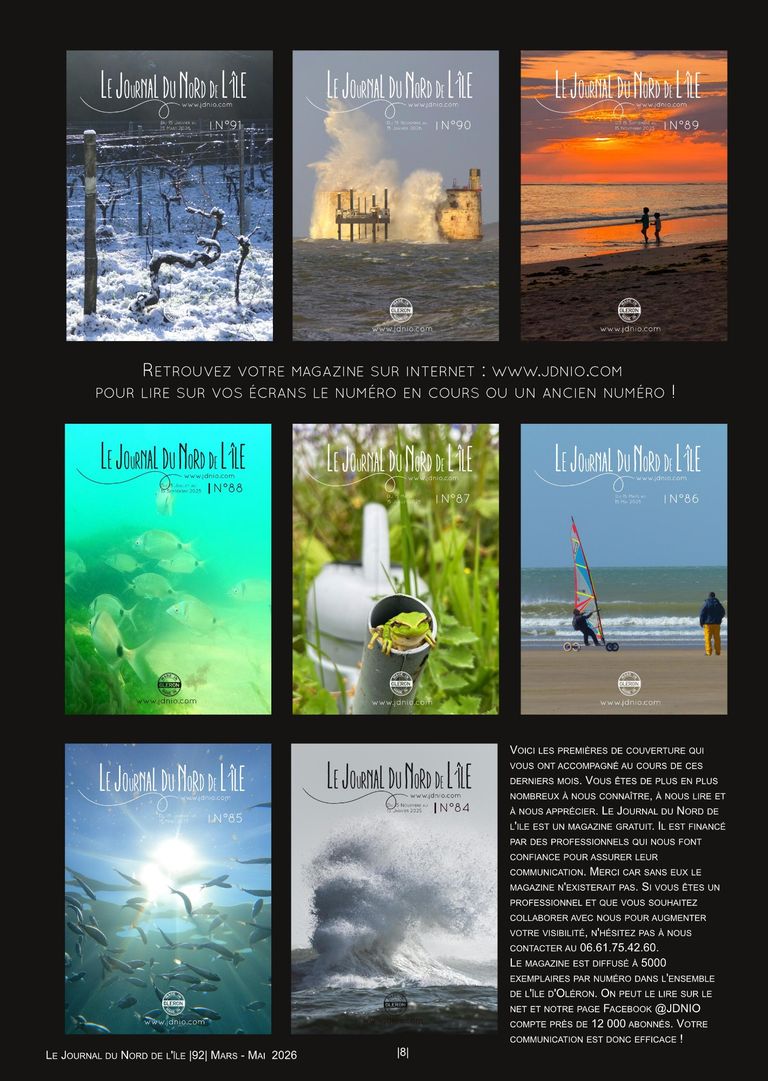 Magazine local où l'on parle de l'hiver sur l'île d'Oléron, de l'actualité de la médiathèque de Saint-Denis ou de la vie des associations, de sujets naturalistes, de l'actu de nos clients annonceurs sans qui le magazine n'existerait pas.