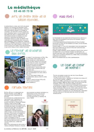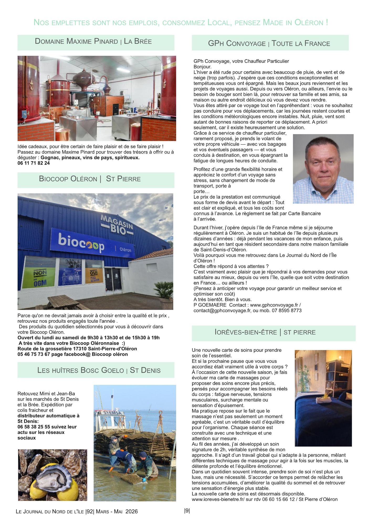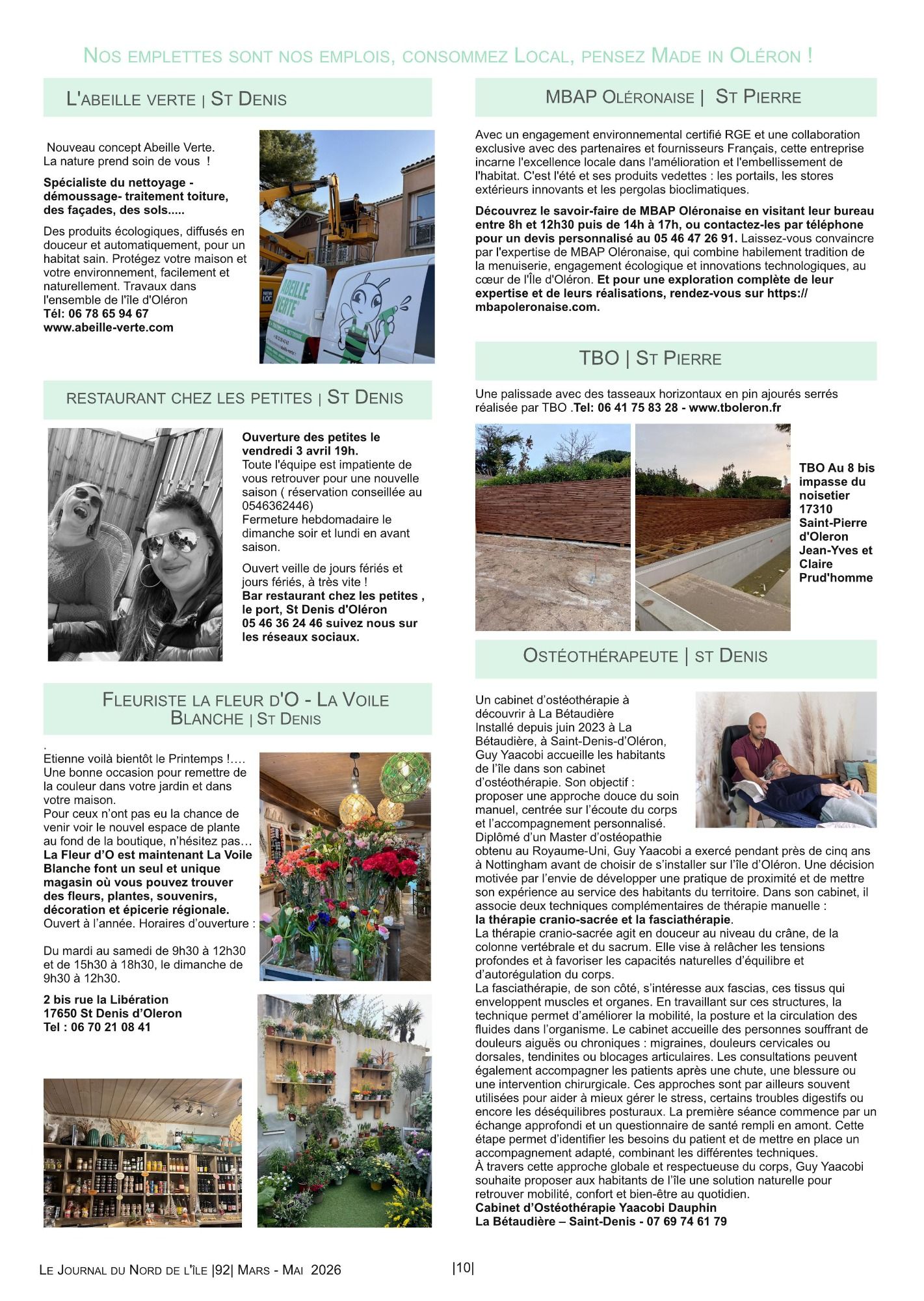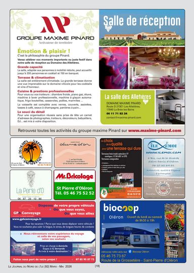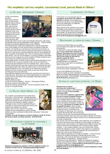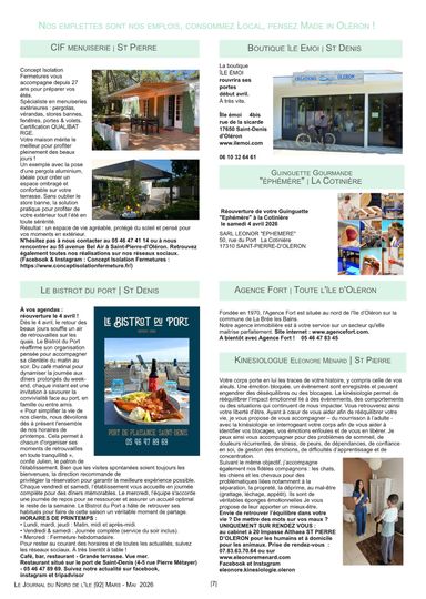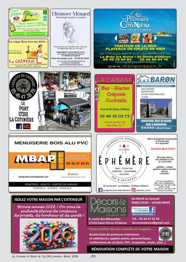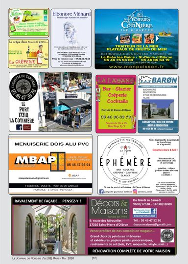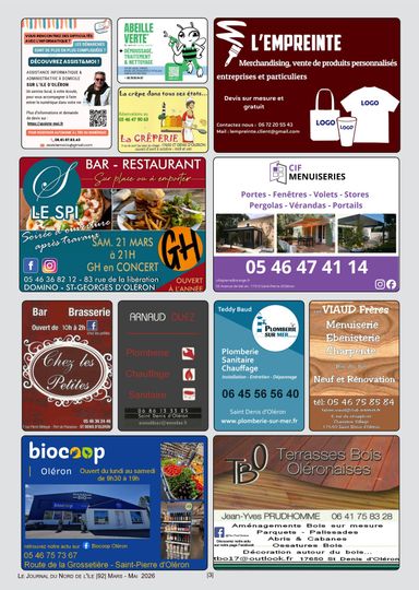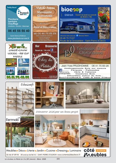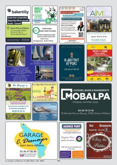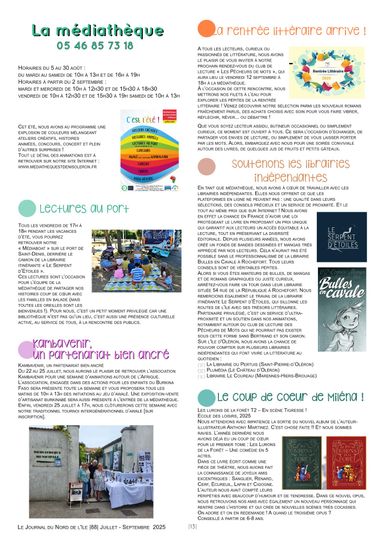 Magazine local où l'on parle de l'hiver sur l'île d'Oléron, de l'actualité de la médiathèque de Saint-Denis ou de la vie des associations, de sujets naturalistes, de l'actu de nos clients annonceurs sans qui le magazine n'existerait pas.