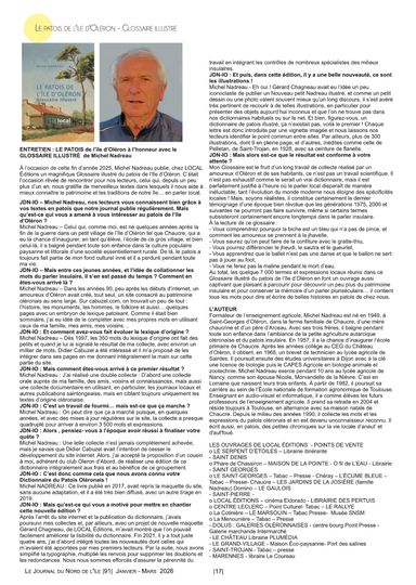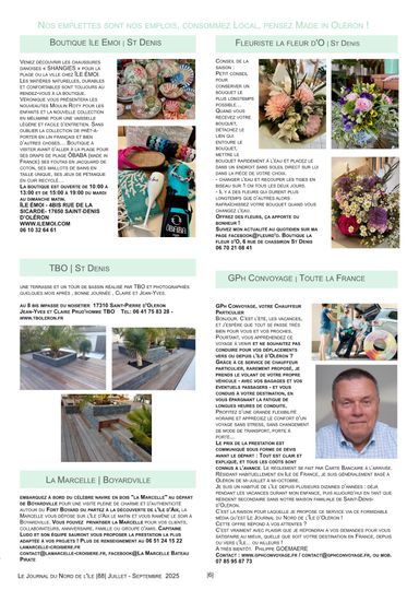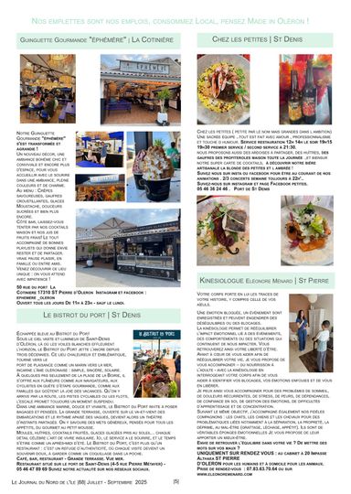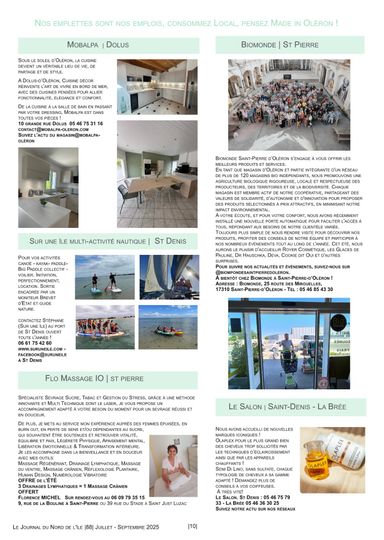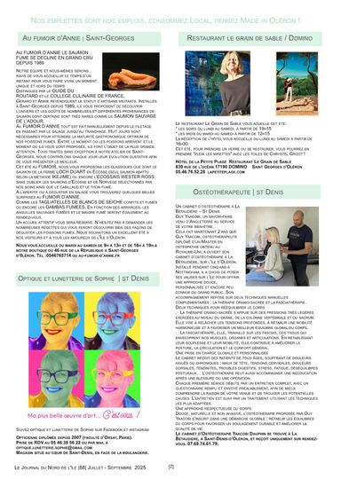 Magazine local où l'on parle de l' automne sur l'île d'Oléron, de l'actualité de la médiathèque de Saint-Denis ou de la vie des associations, de la protection des Océans, de sujets naturalistes, de l'actu de nos clients annonceurs sans qui le magazine n'existerait pas.